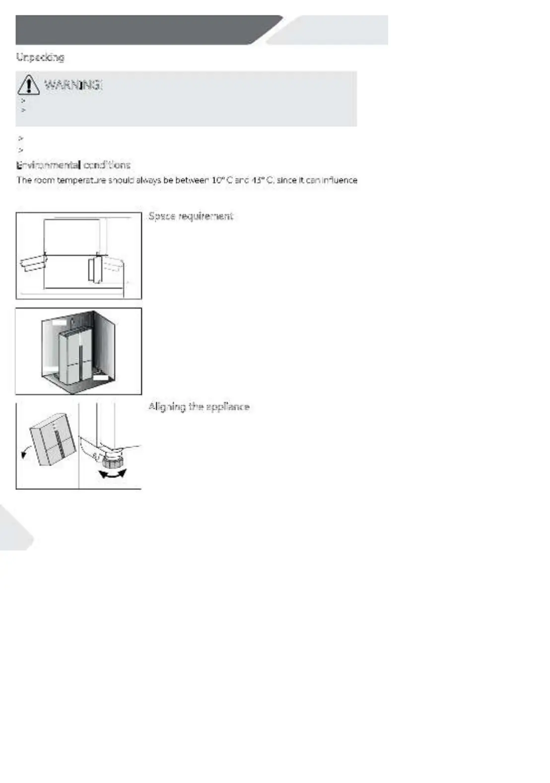 the temperature inside the appliance and its energy consumption. Do not install the appli