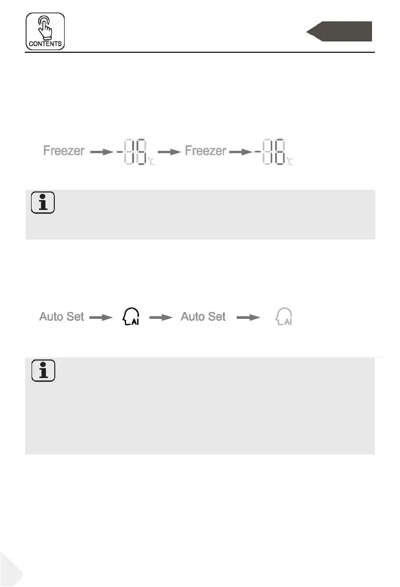 ► When the Auto set mode is on, the fridge temperature and the freezer