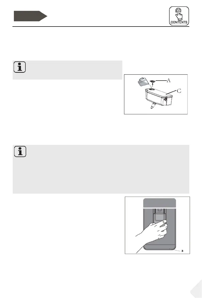 Капакът (C) на резервоара за вода се използва допълнително за пестене на
