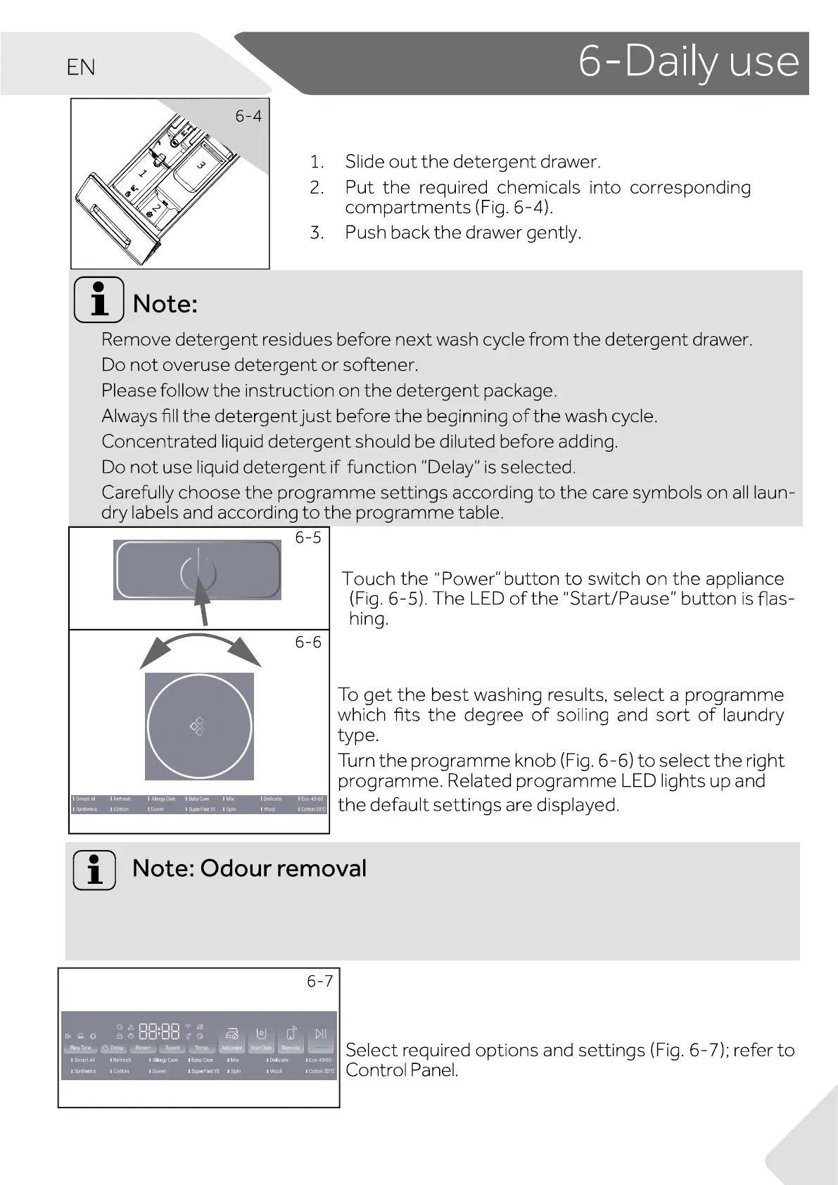 Before first use we recommended to run programme "Drum Clean" with no load to remove possibly