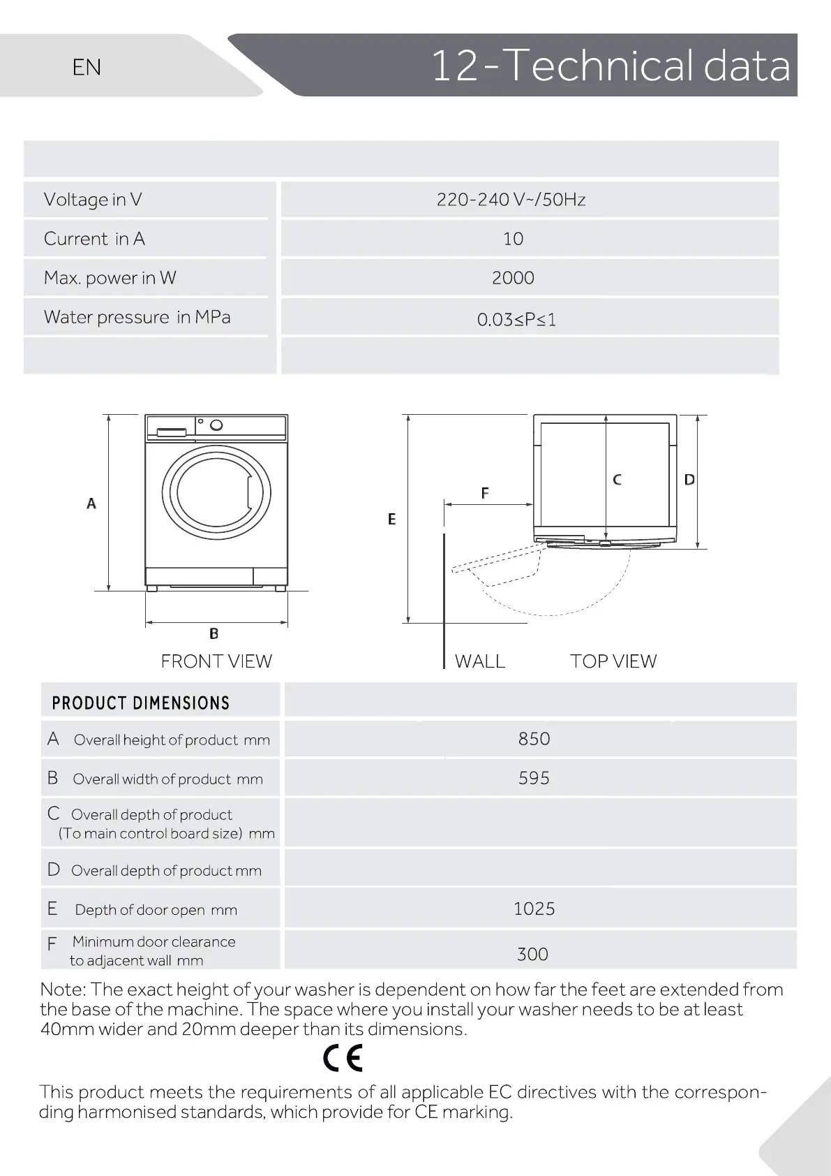 12.1 Additional technical data
