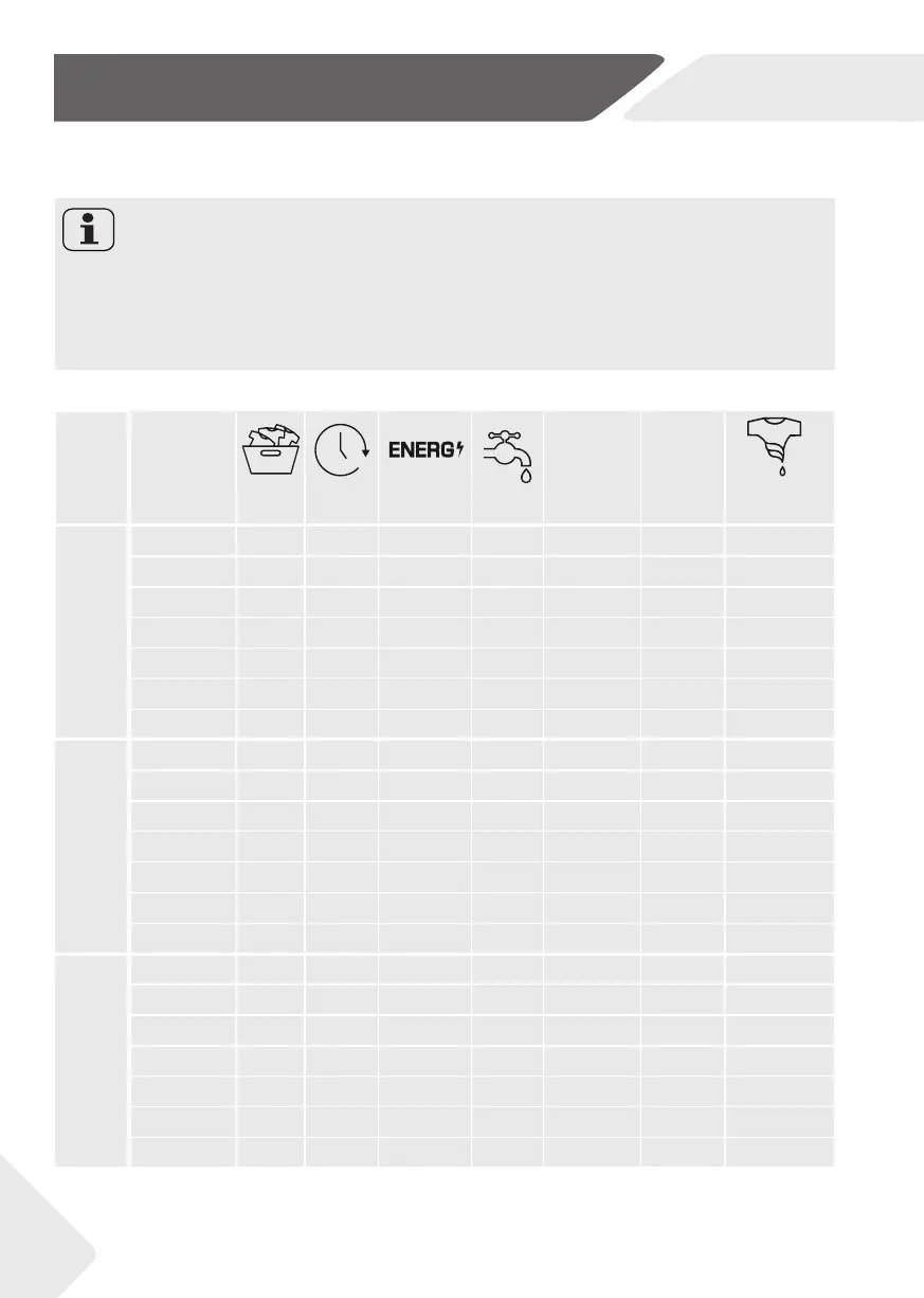 The values given for programmes other than the Eco 40-60 programme and the wash and dry cycle