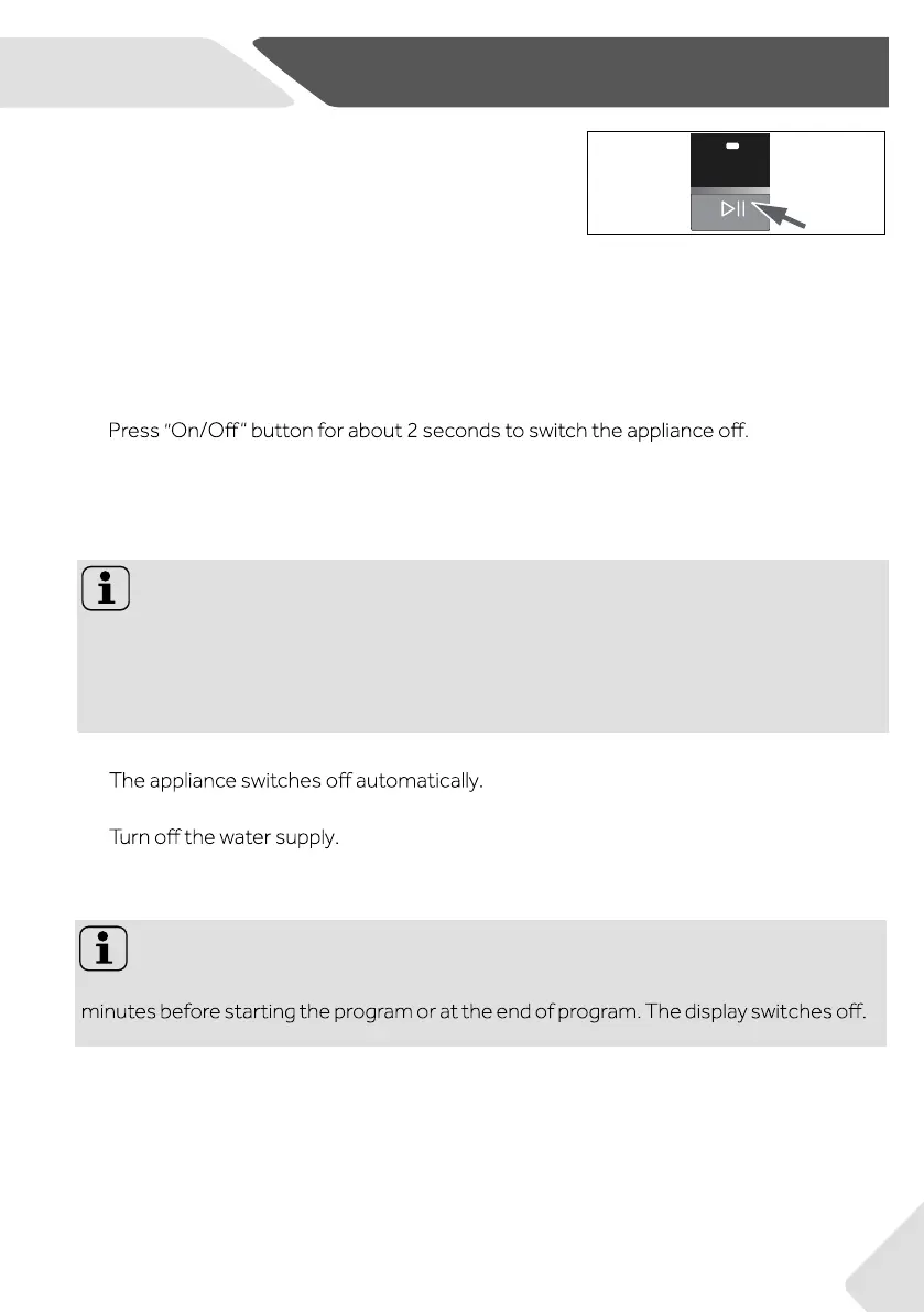 This saves energy. To interrupt the standby mode push “Start/Pause“ button.