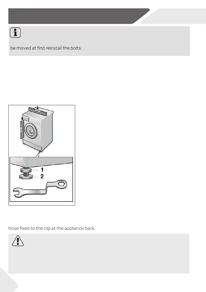 Keep the transportation bolts in a safe place for later use. Whenever the appliance is to