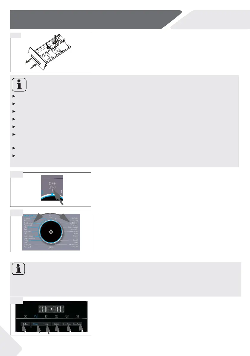 Remove detergent residues before next wash cycle from the detergent drawer.