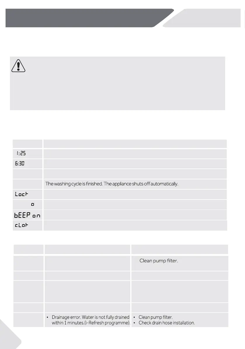 oor is closed because of high water level, high water temperature or spinning cycle.