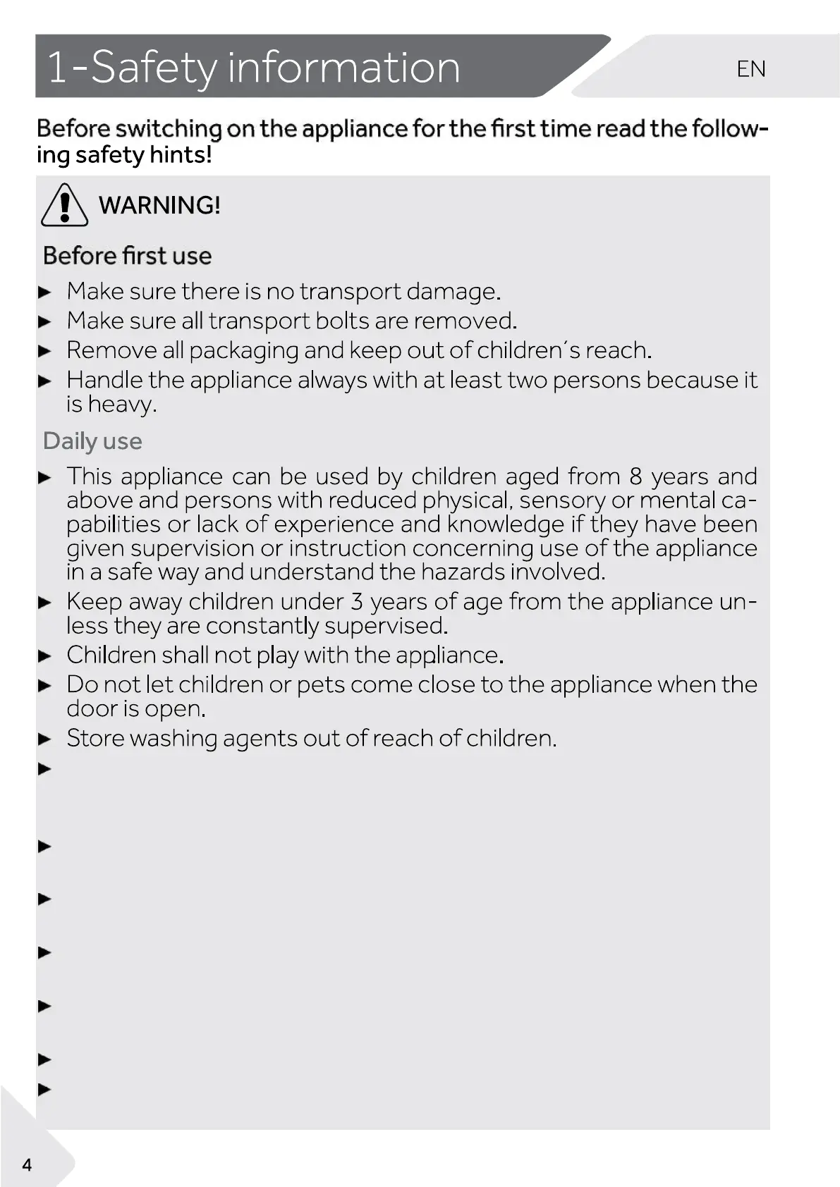 Do not use any flammable sprays in close vicinity to the appliance