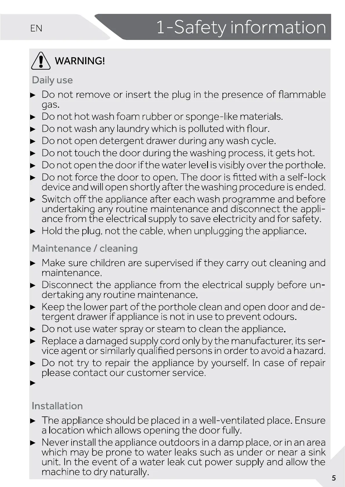 goods, lighted candles, lighted cigarettes, etc. from the appliance.