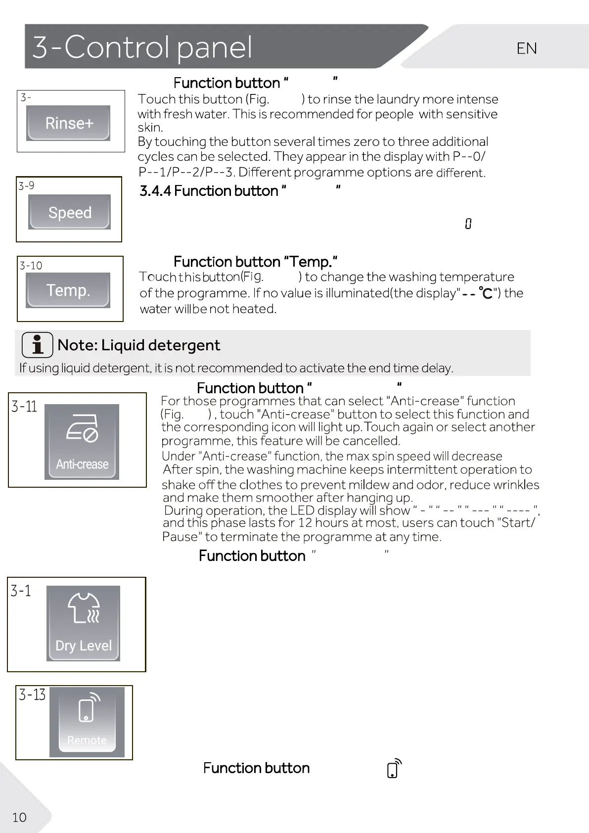 dL-3 :Touch Dry level button ,the display dL-3,