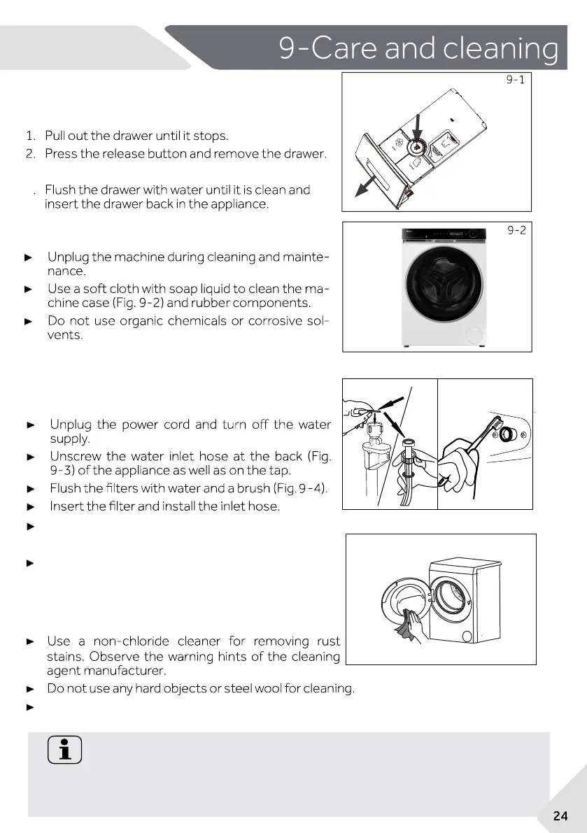 9.1 Cleaning the detergent drawer