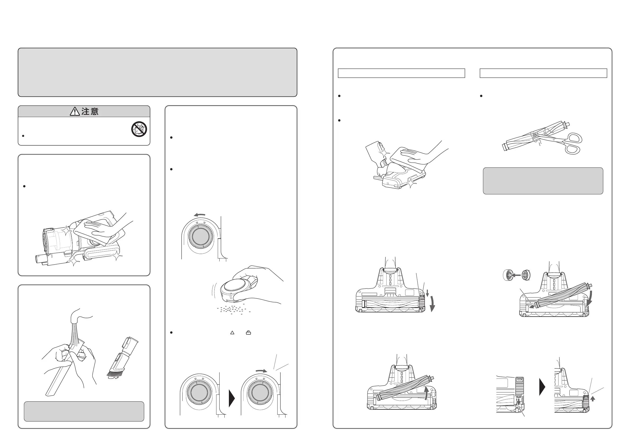 回転ブラシに糸くずなどが絡まっている場合は、ハ