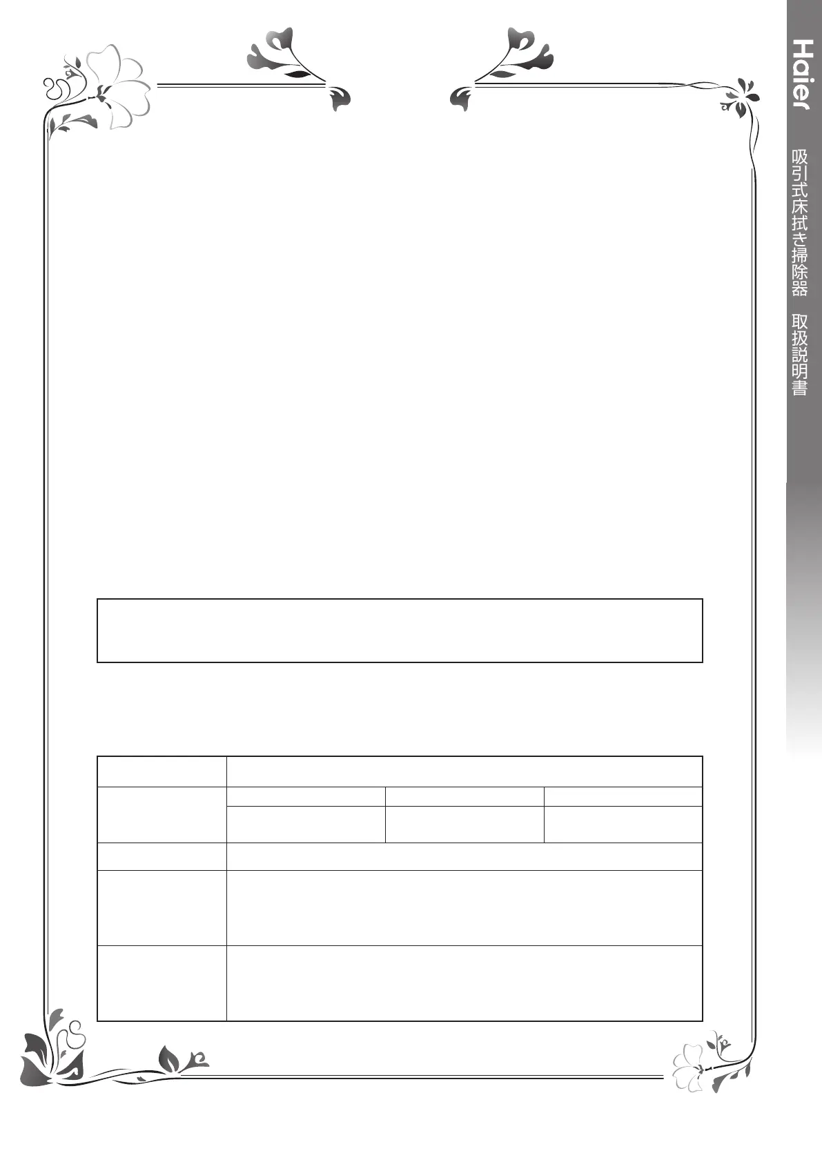 3.ご贈答等で本書に記入の販売店で無料修理をお受けになれない場合には、ハイアールジャパンセールス株式会社