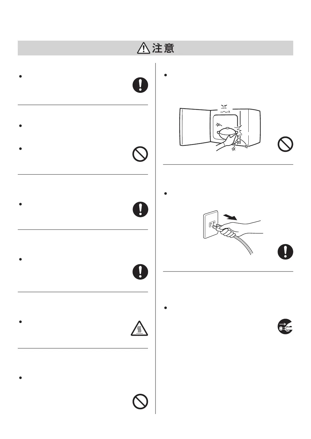 加熱後、庫内にあった容器を急に冷やさないでください。ヒビが入ったり、割れたりすることがあります。