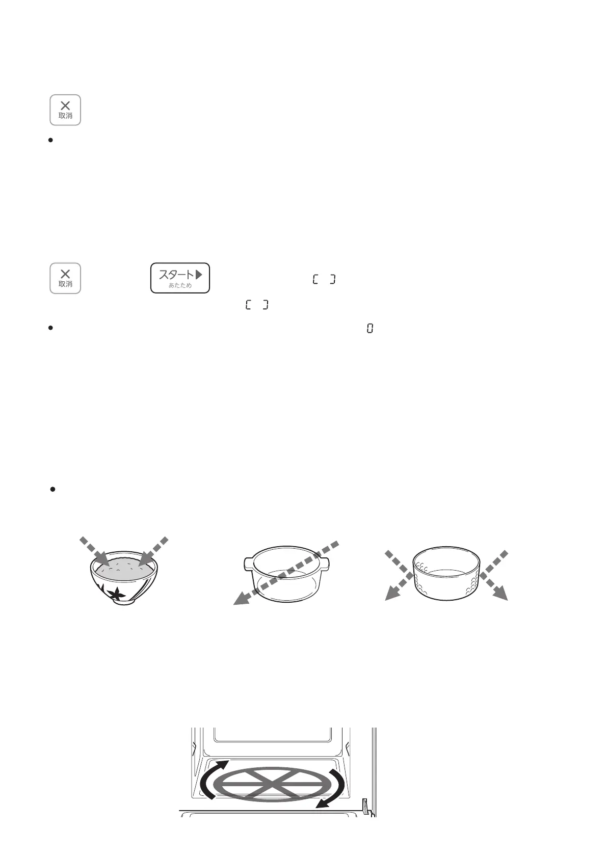 小さく切ったものや少量で加熱すると、火花が出て焦げたり、乾燥することがあります。様子を見ながら加熱してください。