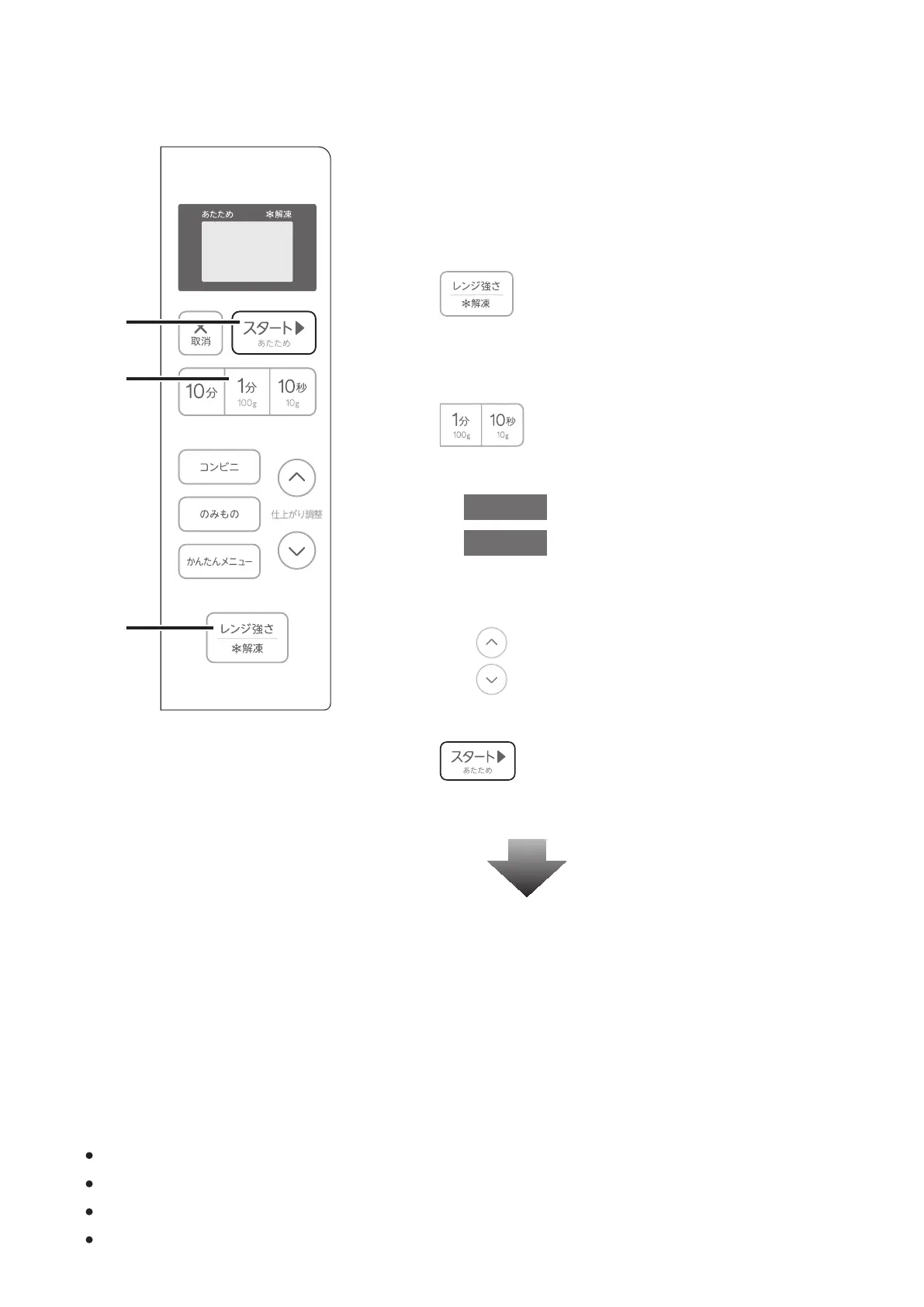 ※加熱終了後、食品を取り出さないとアラームが1分ごとに鳴