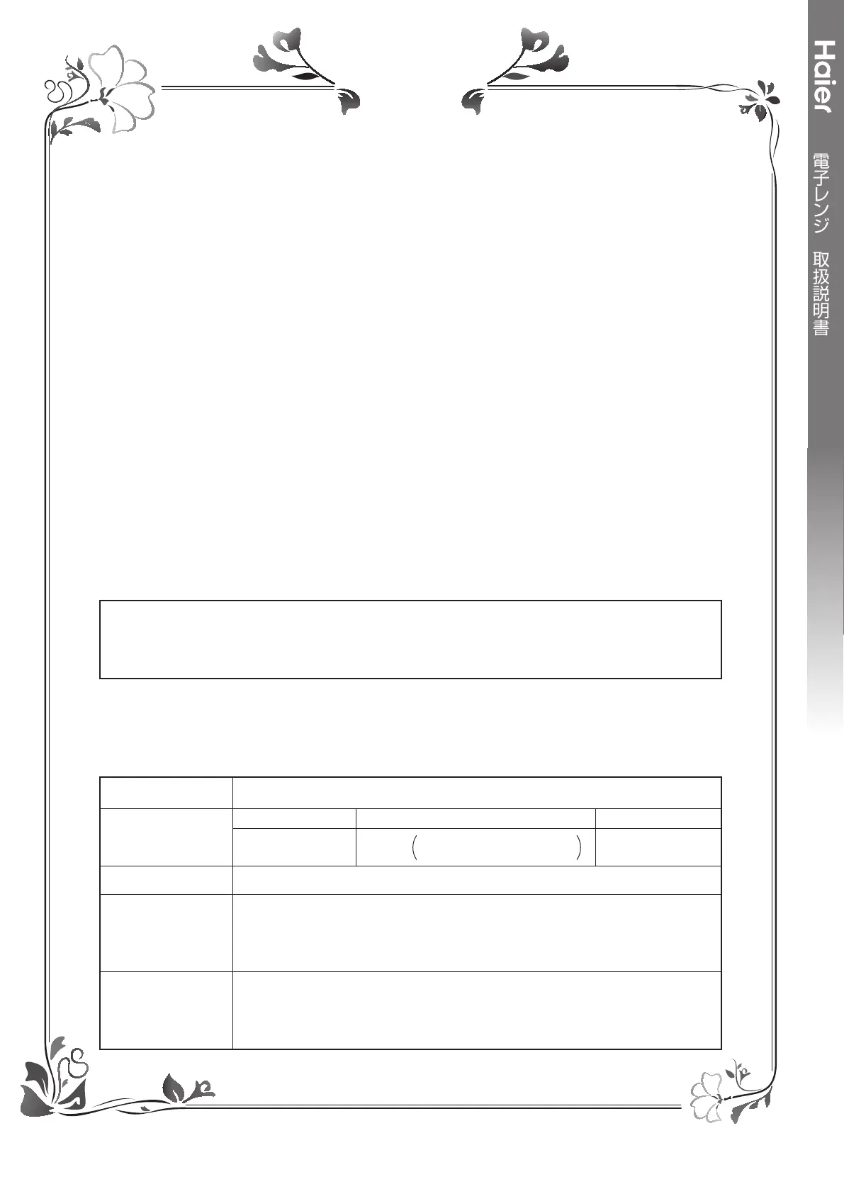 3.ご贈答等で本書に記入の販売店で無料修理をお受けになれない場合には、ハイアールジャパンセールス株式会社