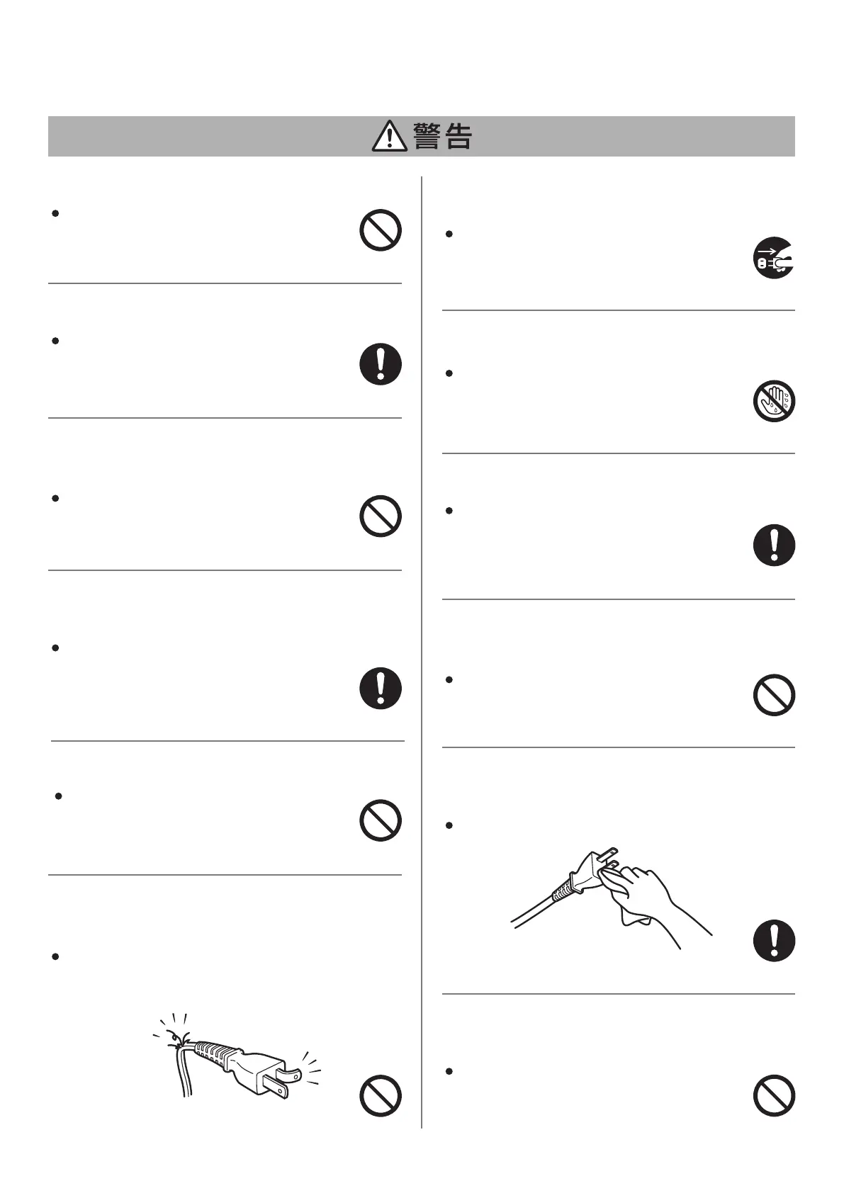 電源プラグは、ぬれた手で抜き差ししない