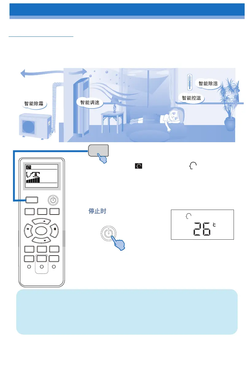 暖(2℃)、热(3℃);首次进入智能模式无温度显示。