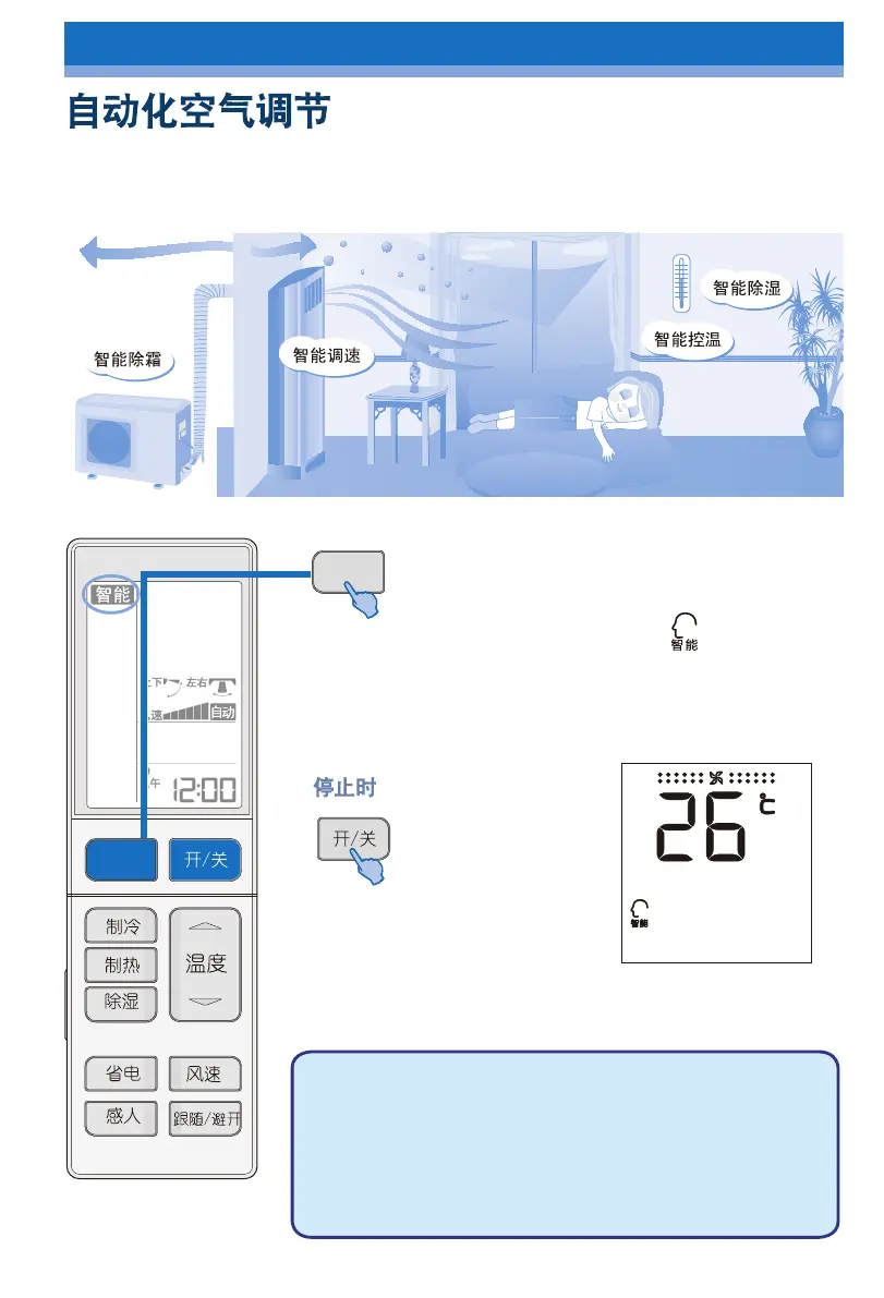 按下遥控器上的PMV按键,空调将采集到的温度、湿度、风