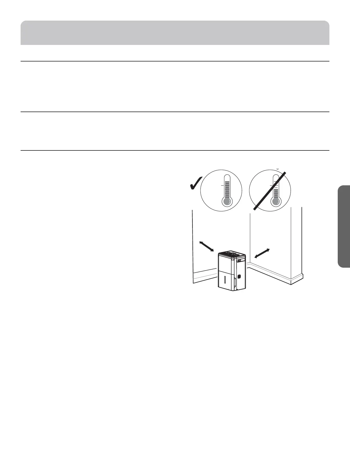 • Pour obtenir une efficacité optimale, le déshumidificateur doit