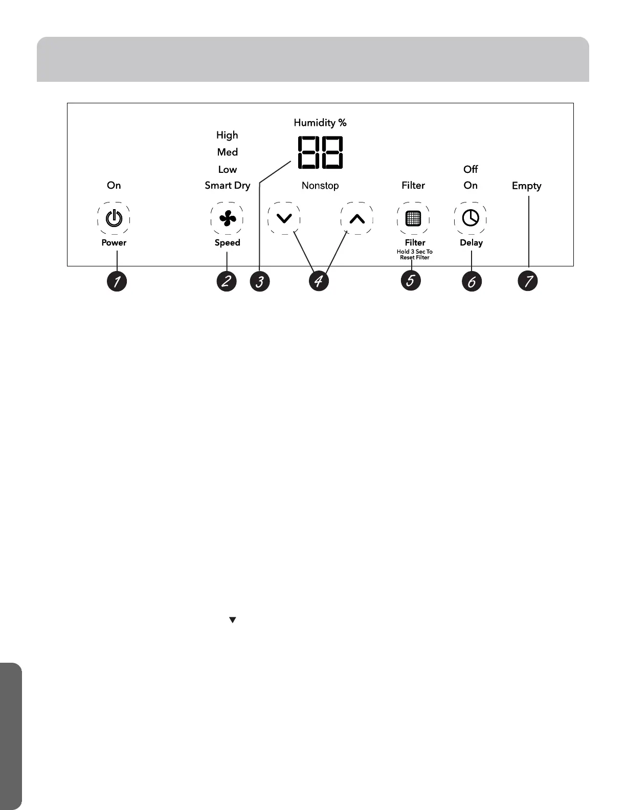 Si desea aire más seco, presione el botón – y seleccione un valor