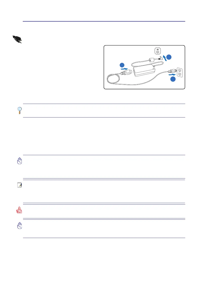 必须使用接地的交流电源插座或正确接地的适配器以确保安全操作笔记本电脑。请勿从电