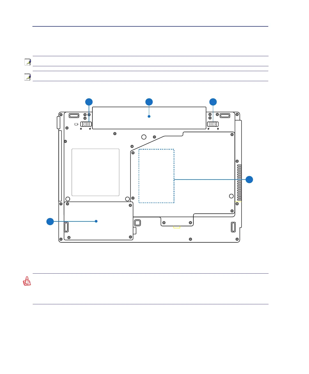 请参考下面的图示来识别笔记本电脑底部的组件。