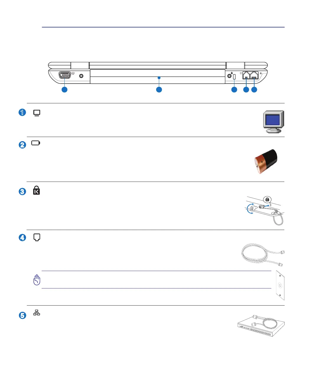 请参考下面的图示来识别笔记本电脑背面的组件。