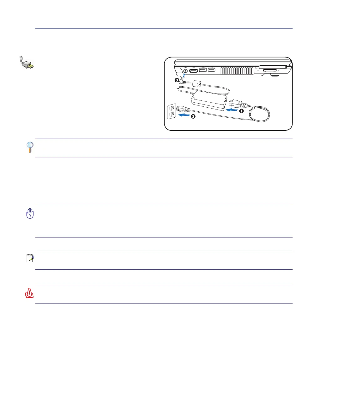 警告!电源适配器在使用过程中可能会变热。请小心不要用东西盖住适配器,也不要让适配