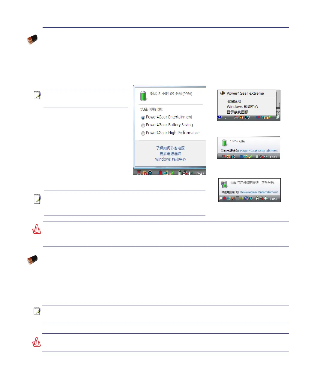 池”的电源图标,而使用交流电源时则出现“插头”电源图标。要取得更多的信息与设置,请