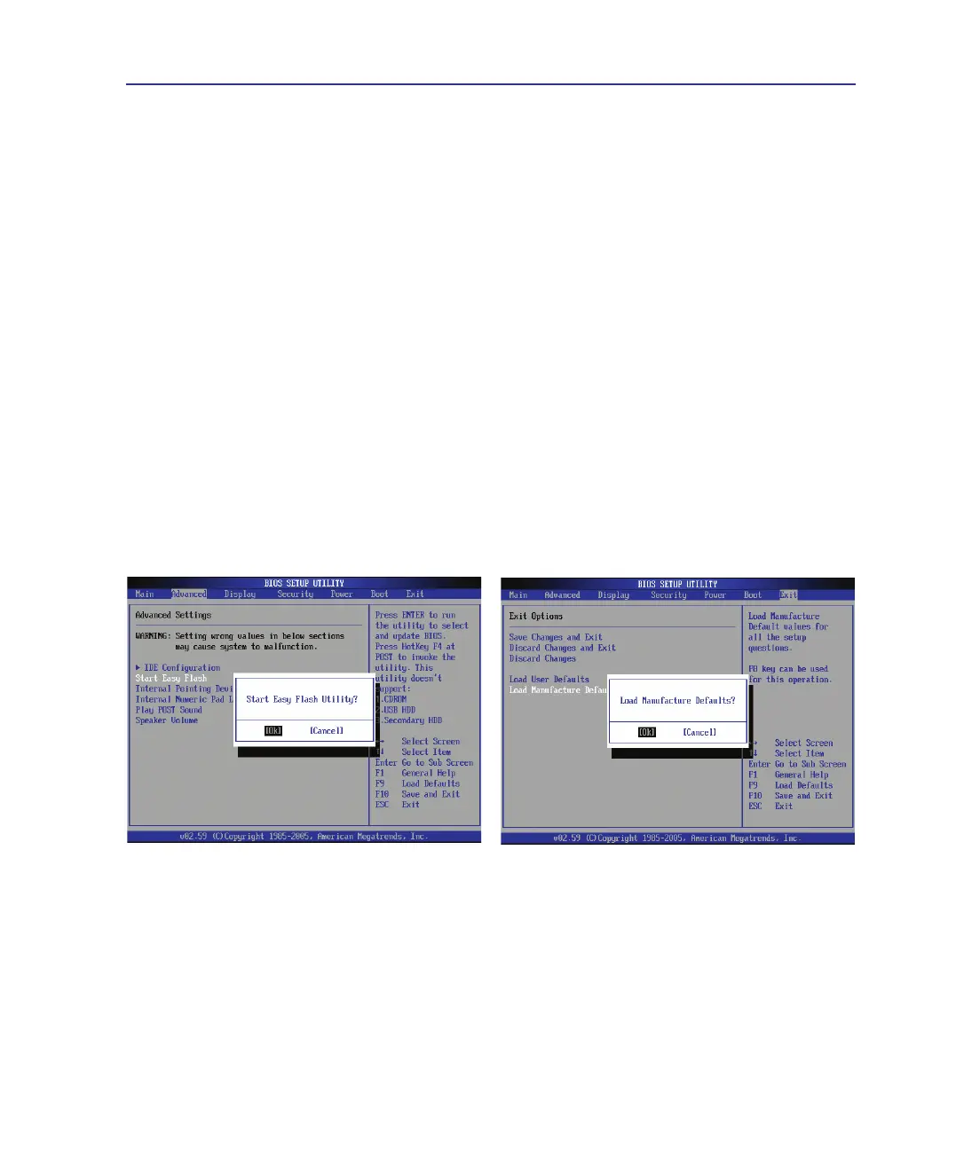 f. 进入 BIOS 设置页面后,请进入“Exit”页面并选择“Load Manufacture De-