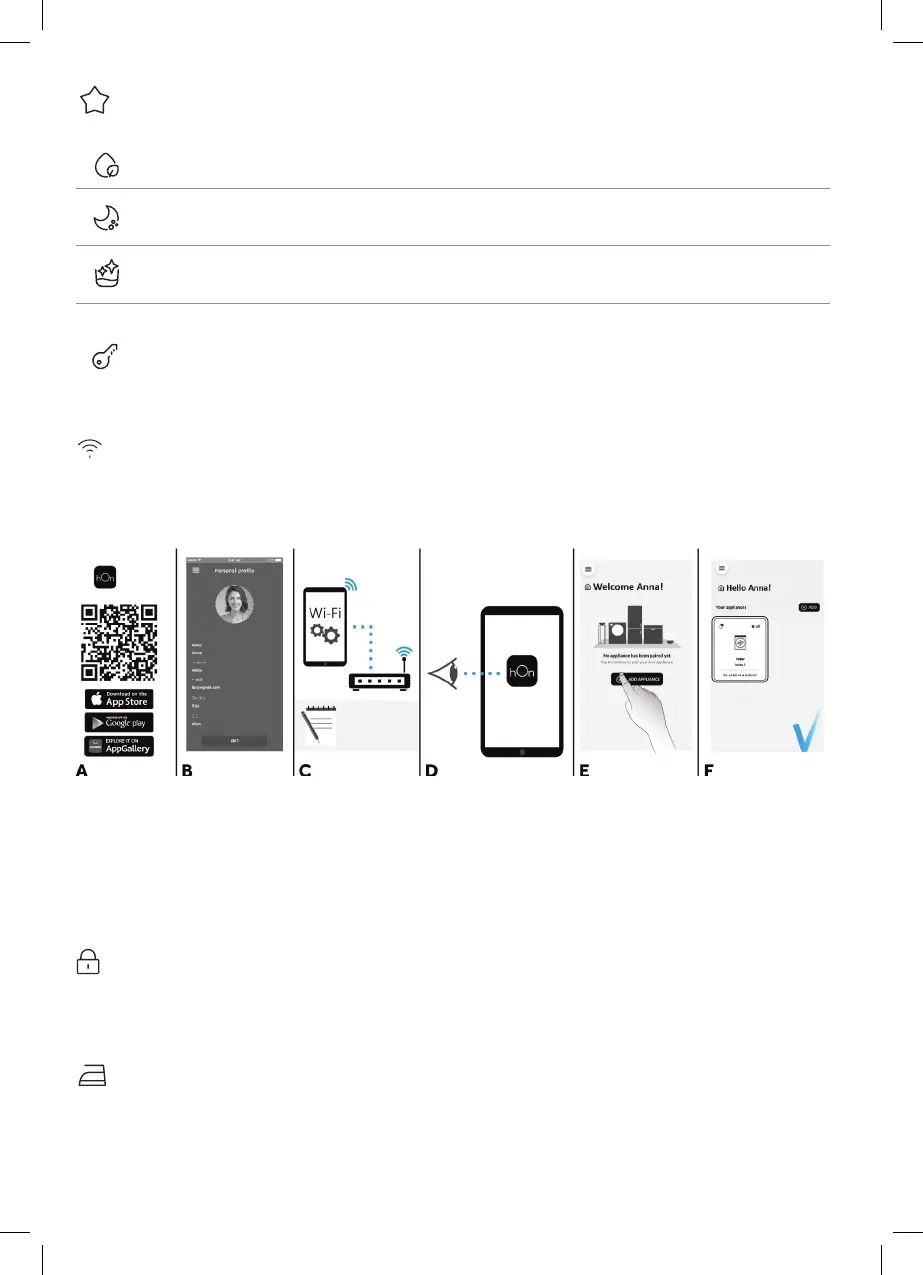 Last ned hOn-appen på enheten din ved å ramme inn følgende QR-kode eller ved å bruke lenken: go.haier-europe.
