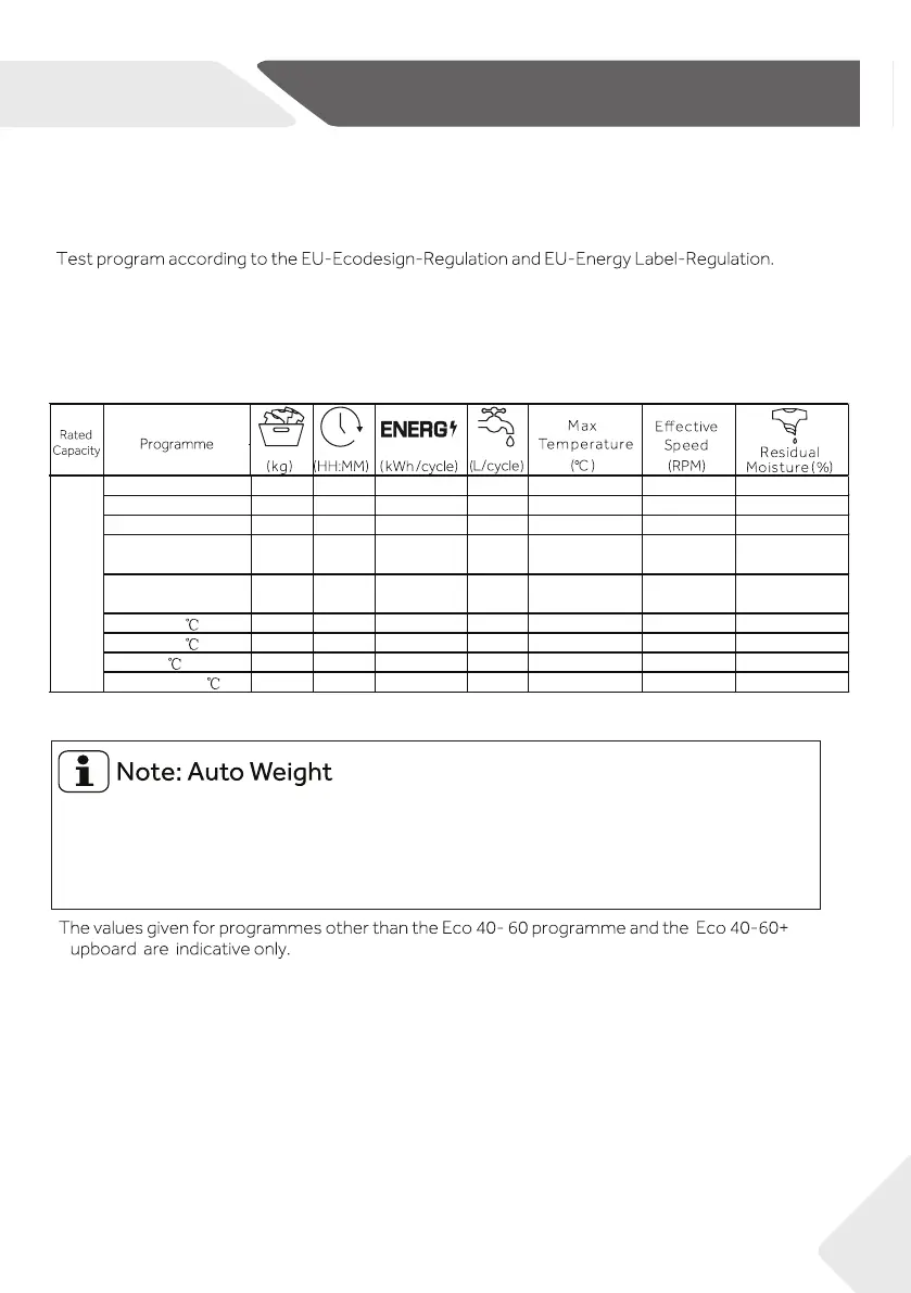 1 :Select Eco 40-60, then touch the start button, enter the washing performance programme.