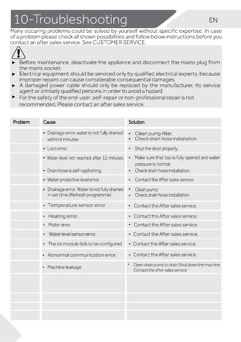 • Drying motor error .