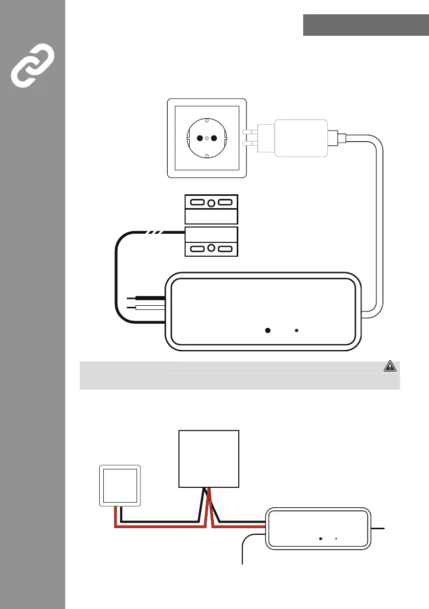 • Connect the garage door control unit to a suitable power supply unit and a properly installed socket.