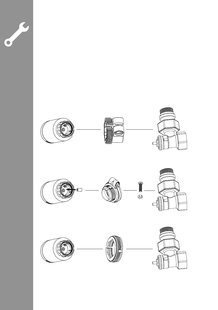 • Mittels der Überwurfmutter kann das Thermostat an allen Ventilen mit dem Gewindemaß M30 x 1,5 mm