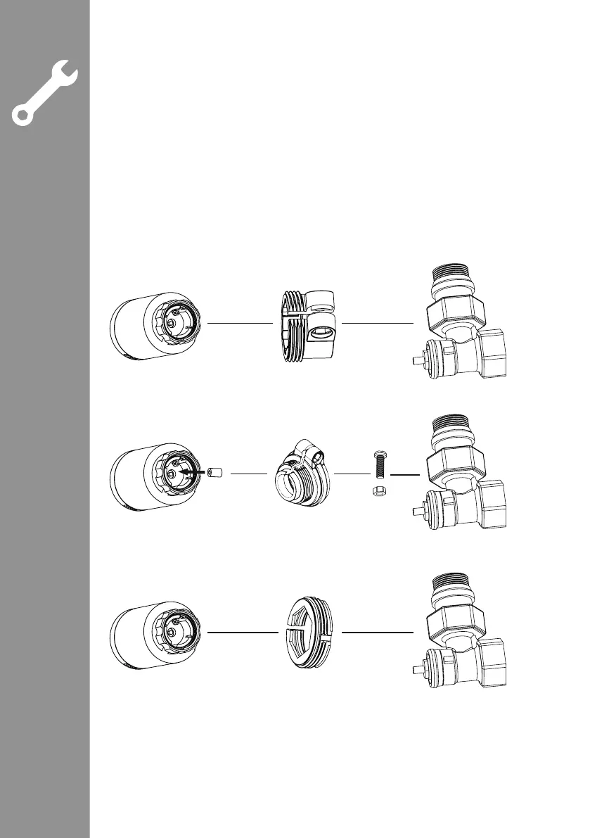 • With the adapters included in the extent of delivery, the device can also be tted to radiator valves of type