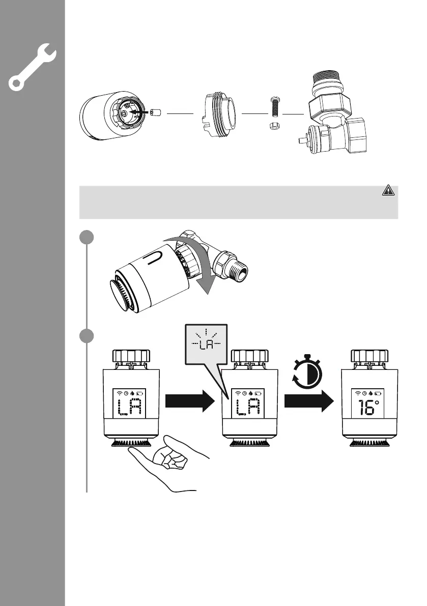 • Press the control dial (1). The "LA" display starts to ash. The radiator thermostat now carries out an