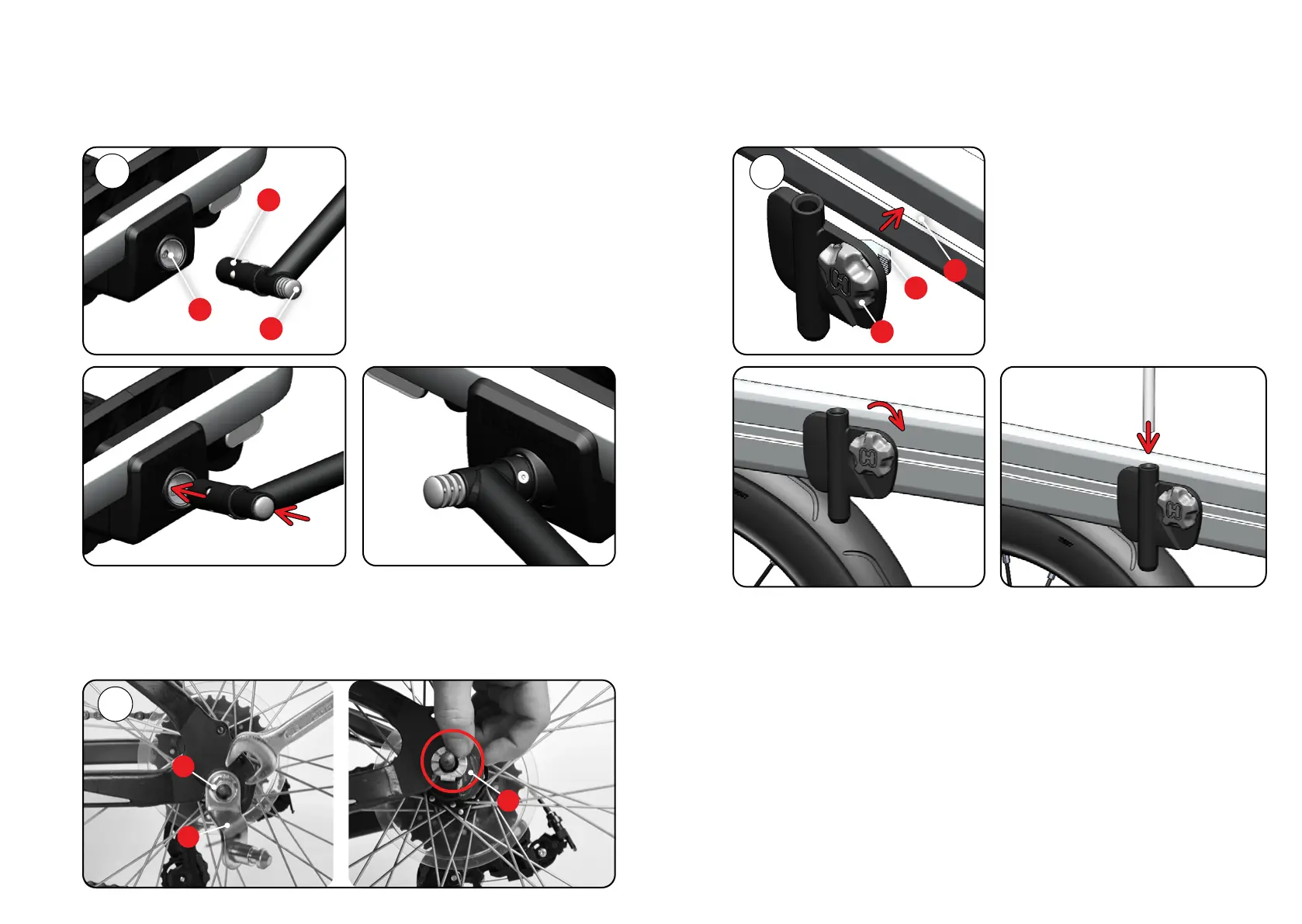 • Plassér hurtigfestet [4b] mellom sykkelens hurtigkopling/muer og rammen. Påse at sporene i hurtigkoplingen passer med