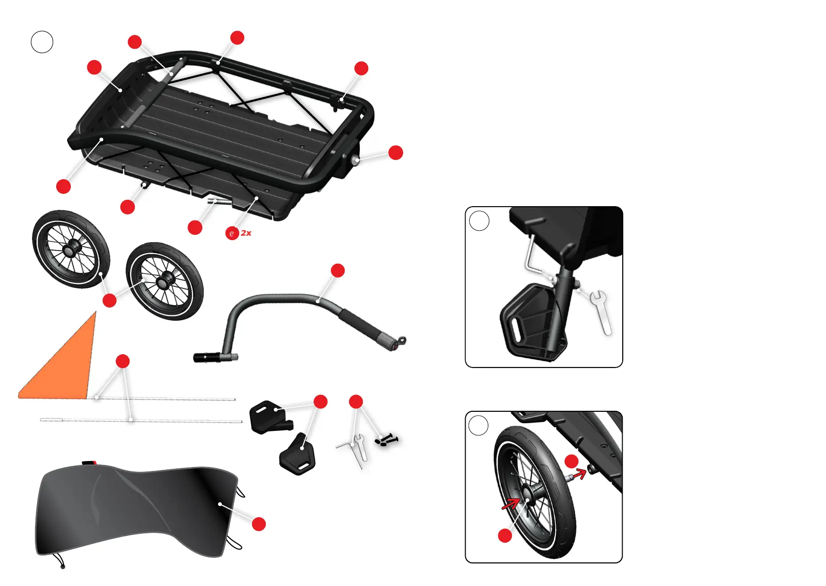 • Faites glisser les protections de roue sur les extrémités correspondantes du tube de la béquille.