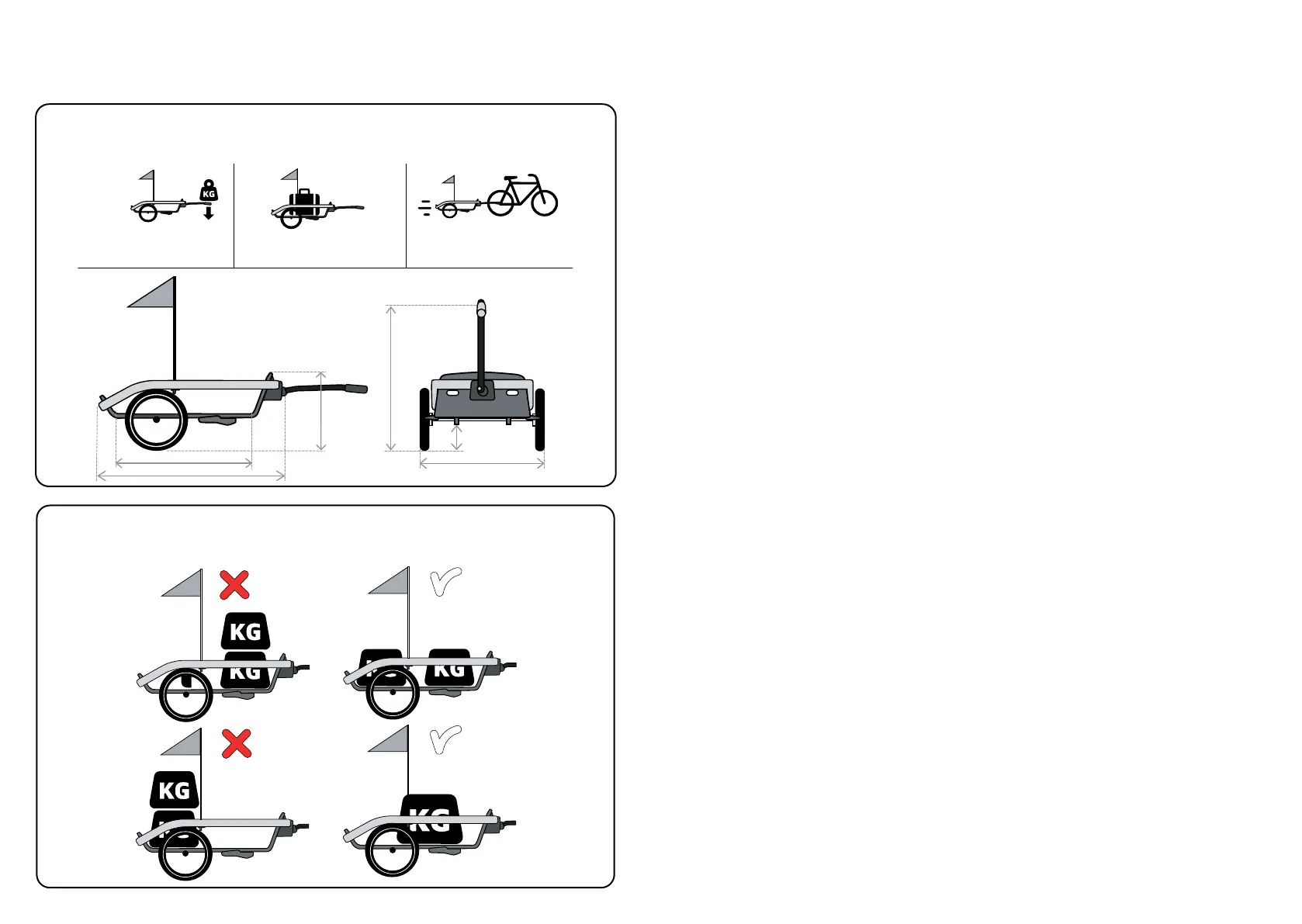 Innan du kopplar cykelvagnen till din cykel ska du se till a cykeln är lämplig för a dra en vagn enligt cykeltillverkarens