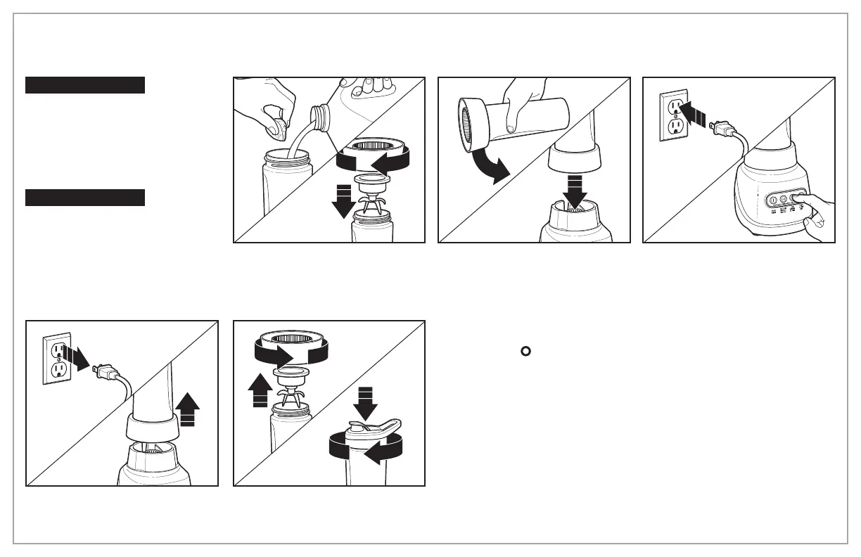 S’assurer que l’appareil est débranché. Déposer les ingrédients dans la tasse de voyage. NE PAS ajouter d’ingrédients