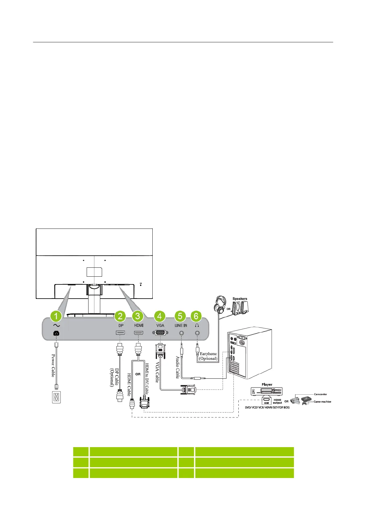 2. Connect one end of the DP cable (optional) to the back of the monitor and connect the other end