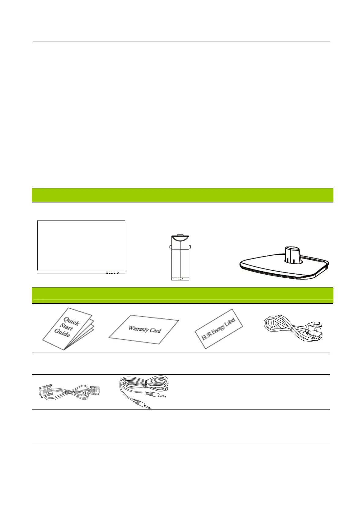 Quick Start Guide Warranty Card EUR Energy label Power Cord