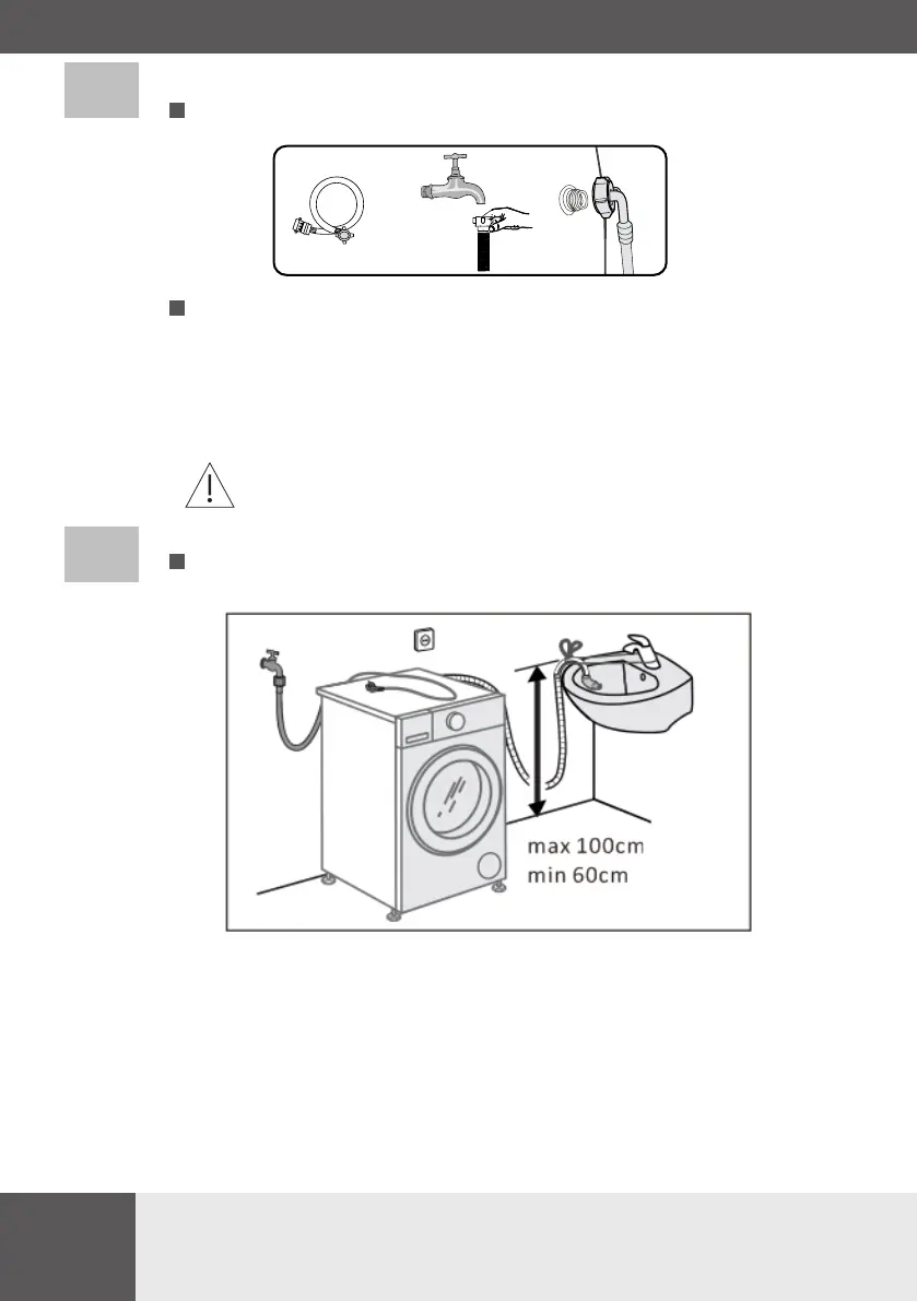 not move while the washing machine is in operation. If necessary, use the elbow.