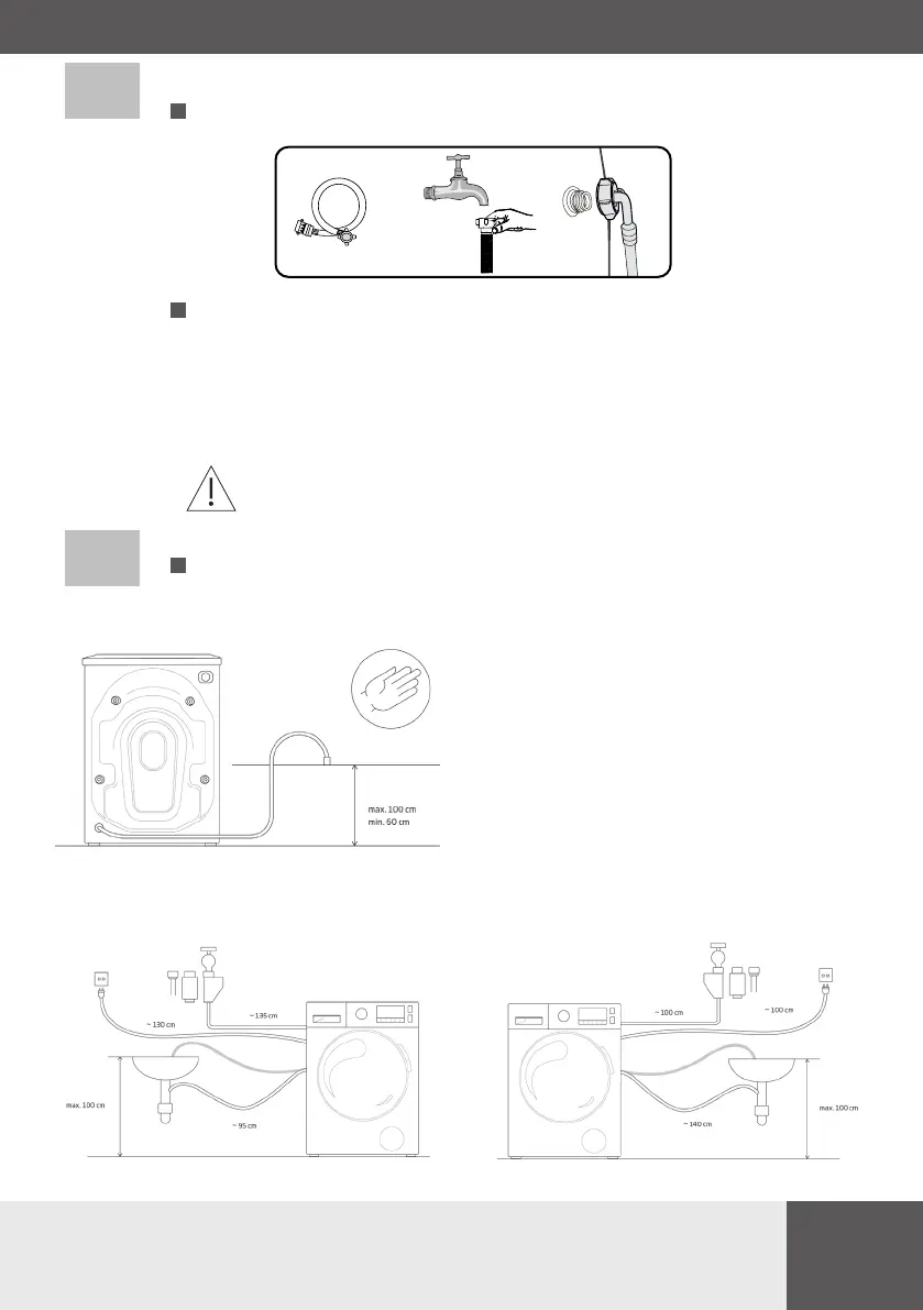Use only the new hoses supplied with the machine. Do not re-use hoses.