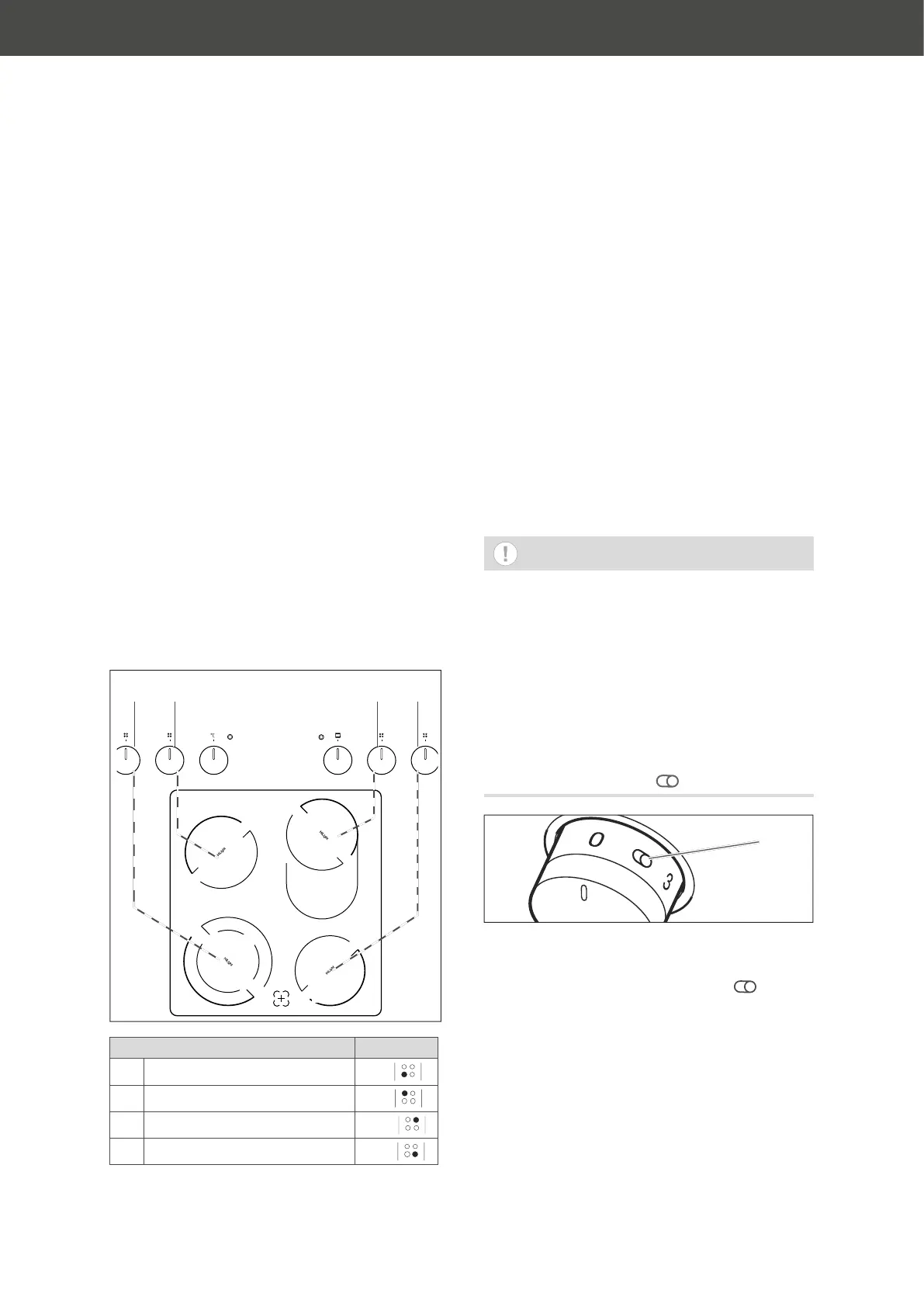 Das Kochfeld besitzt 4 Kochzonen. Jede