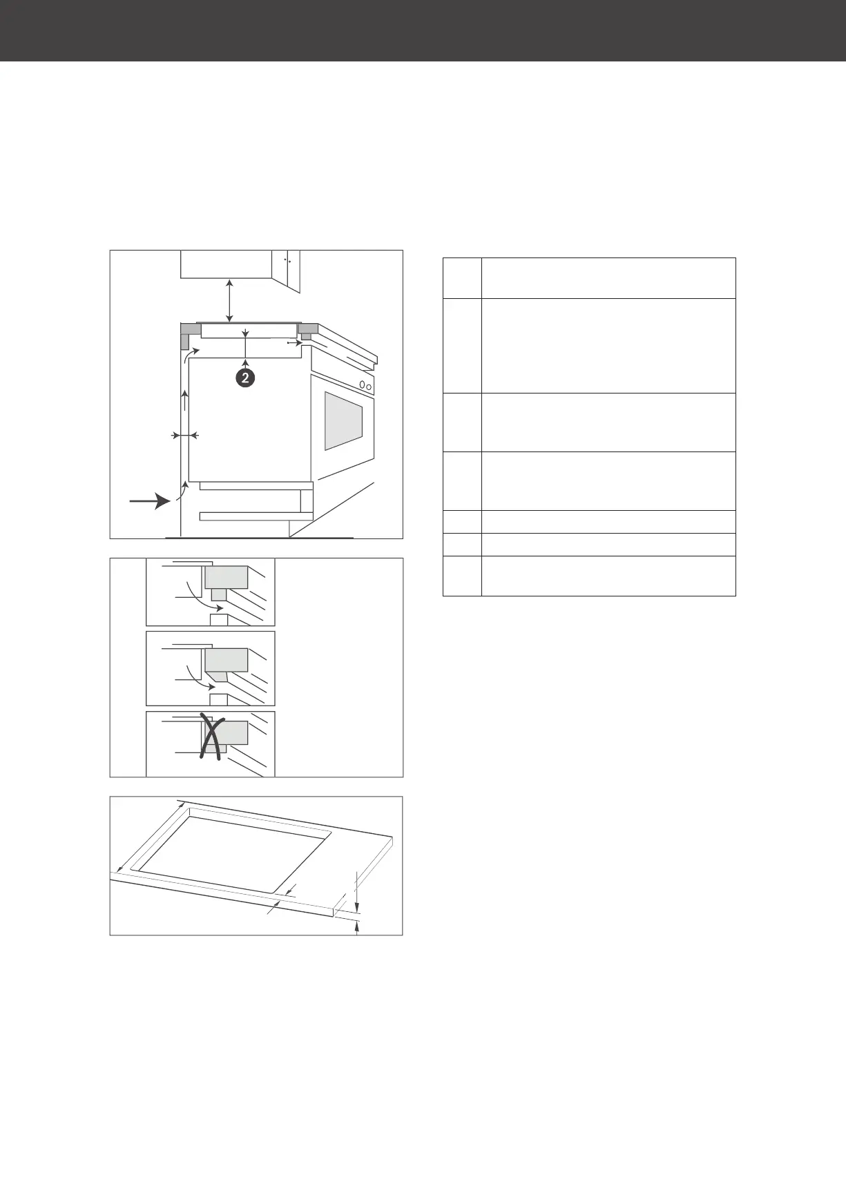 sides by worktop of at least: ≥50 mm