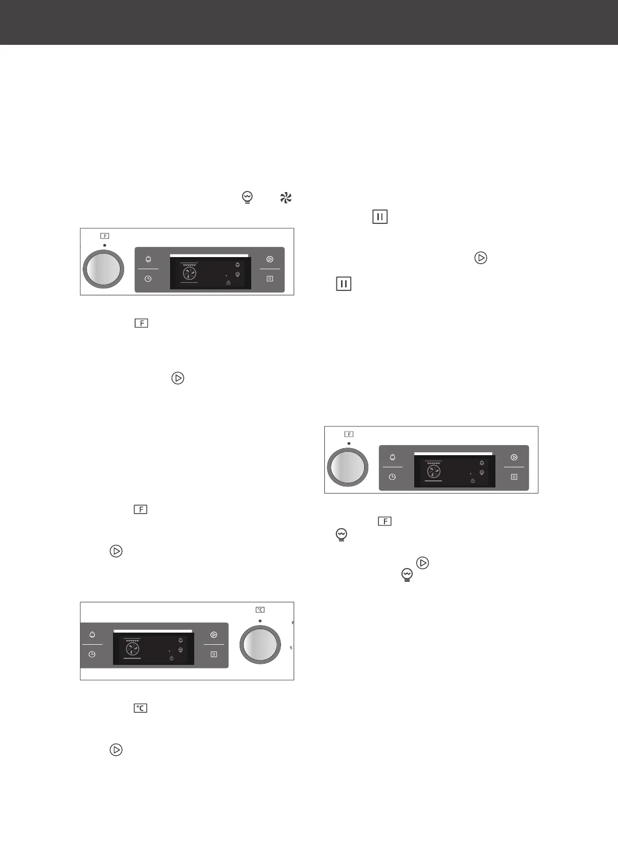 fan symbol. The oven lighting is on. You will