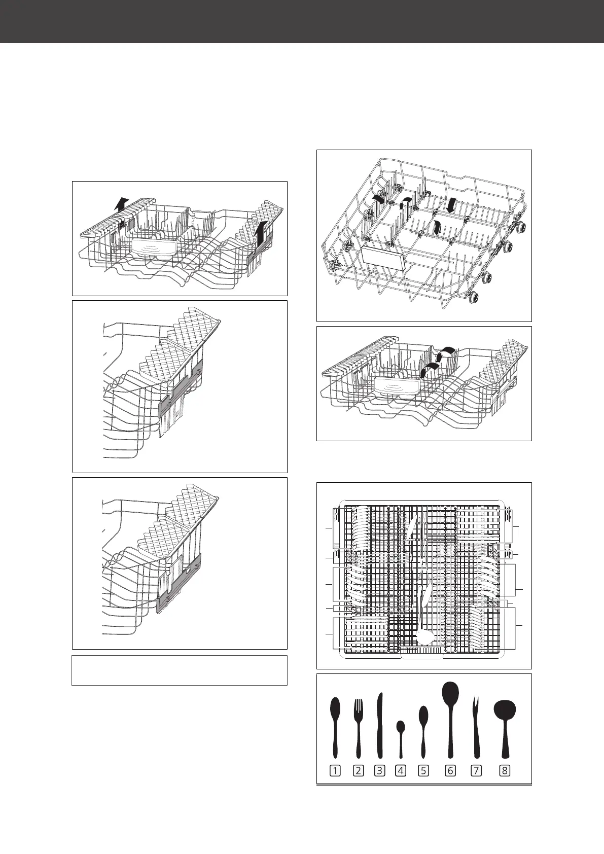 wie Töpfe und Pfannen. Jede Reihe lässt